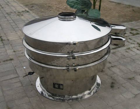 產品簡介:本品為1000mm直徑兩層三出口碳鋼材質旋振篩,子母網分離式網架,上半部噴白漆.
