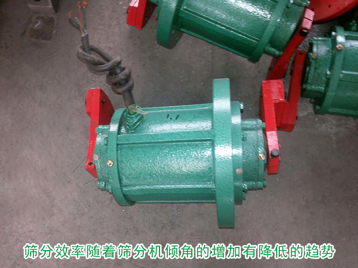 當振動電機的工作轉速固定在500r/min時,在相對增高線速度的錘頭撞擊下,使得破碎并使之均勻化,排料粒度相對小一些,較有利于下道篩分工序。篩分機在傾角較小的工況下,篩分效率都較高。但隨著篩機轉速的增高,傾角的增大,部分物料在篩機體內開始做離心運動,反而不利于篩分作業,篩分效率迅速降低。