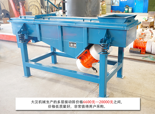 隨著生產(chǎn)節(jié)奏的加快,單層直線振動篩已經(jīng)完全無法滿足生產(chǎn)需求,多層直線振動篩就是由直線振動篩改造升級的一款高效篩分設(shè)備。多層直線振動篩可以將物料分級為多種規(guī)格,實現(xiàn)一次投料出多種規(guī)格物料,可以有效節(jié)省時間成本。由于不同廠家生產(chǎn)的多層直線振動篩型號、生產(chǎn)工藝等不同,所以就導(dǎo)致市場上多層直線振動篩價格不一,那么一臺多層直線振動篩一般都多少錢呢?大漢小編將為您解答: