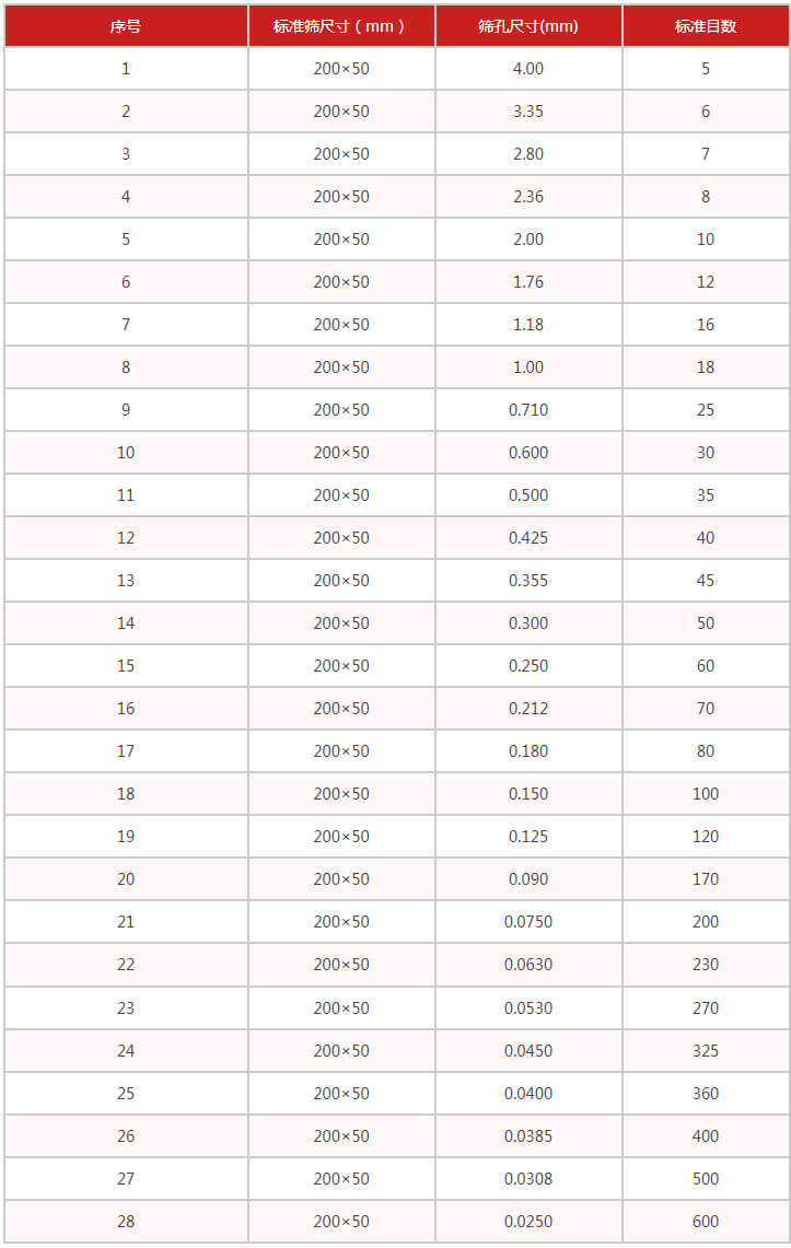準試驗篩是以YZU立式振動電機作為整機振動源,通過振動電機帶動上部振動盤振動,再通過振動盤傳導至安放在振動盤上部Φ200篩框上,然后由需要檢測目數的篩框把小于篩面網孔的物料顆粒篩分至下層篩框,如此層層篩選,使每層試驗篩內只留相同粒度的物料,達到不同粒度的分離并確定此物料的粒度組成,使Φ200型篩框中的物料能非常有效的起到過濾、分級、篩分目的。